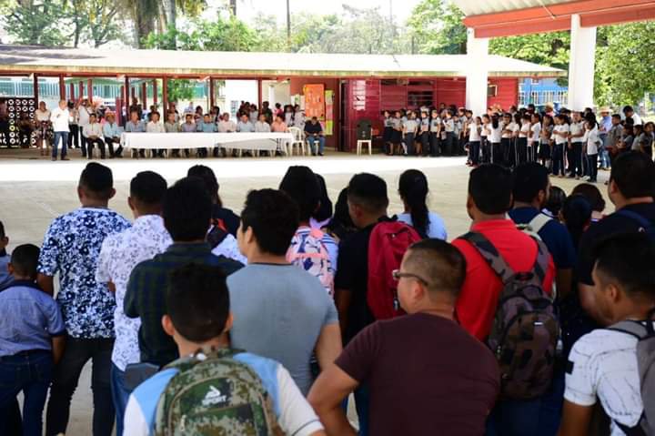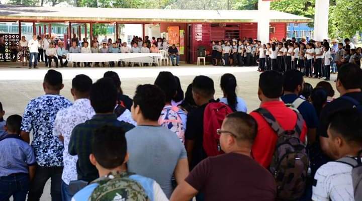 Presentes las autoridades municipales en representación del Presidente Municipal Armando Beltrán Tenorio el Profesor José del Carmen Vasconcelos Canul, Director de la DECUR Municipal. Autoridades educativas y ejidales del Poblado. Así como el Promotor de la Universidad el Profesor Marcos Antonio Jiménez Ramirez. Enhorabuena a los casi 300 alumnos que inician el día de hoy su carrera universitaria, esperando que todos concluyan sus estudios de Educación Superior, (becados los alumnos que tengan entre 18 y 29 años). Tanto el Gobierno Federal , Estatal y Municipal se encuentran trabajando de la mano para que los jóvenes cardenenses aspiren a un mejor futuro, siendo parte de la Cuarta Transformación, la cual encabeza nuestro Presidente de la República Andrés Manuel López Obrador.