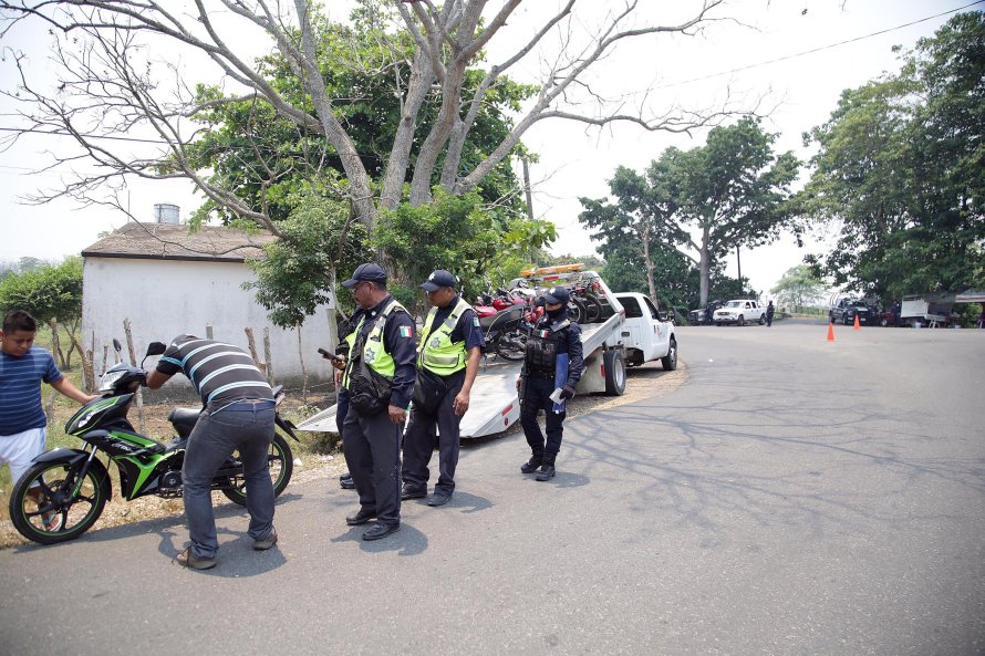 Este martes se montaron retenes durante varias horas en la carretera Villahermosa-Nacajuca; en la ranchería Buena Vista; en la ranchería Río Viejo; en las avenidas César Sandino y Universidad así como en la colonia Las Gaviotas y el primer cuadro de la ciudad, donde se aseguraron varias motocicletas que no contaban con documentación alguna.