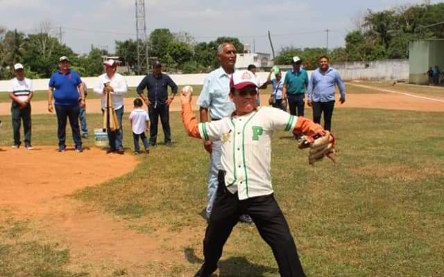 El lanzamiento de la primera bola estuvo a cargo del primer regidor, en compañía del Lic. Ramón Arturo González de la Cruz, secretario del Ayuntamiento. Torruco Jiménez también hizo entrega a los manágers de los bates que serán utilizados durante los partidos de esta liga tabasqueña de béisbol.