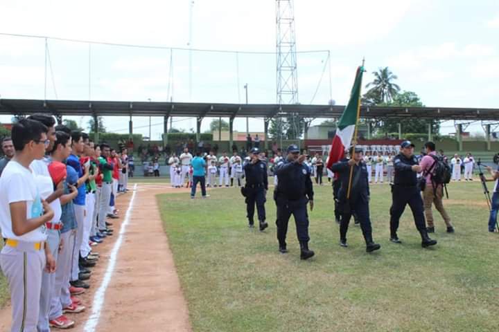 Ante una extraordinaria concurrencia amante al llamado rey de los deportes, “béisbol”, dio inicio el acto inaugural de la liga tabasqueña de béisbol, con los honores a la bandera nacional a cargo de la escolta y banda de guerra de la Dirección de Seguridad Pública.