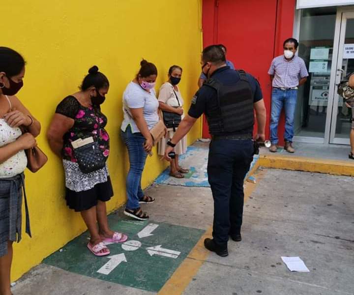Actúa Seguridad Pública para que la población conserve su sana distancia al solicitar servicios en diversos comercios, bancos, ….