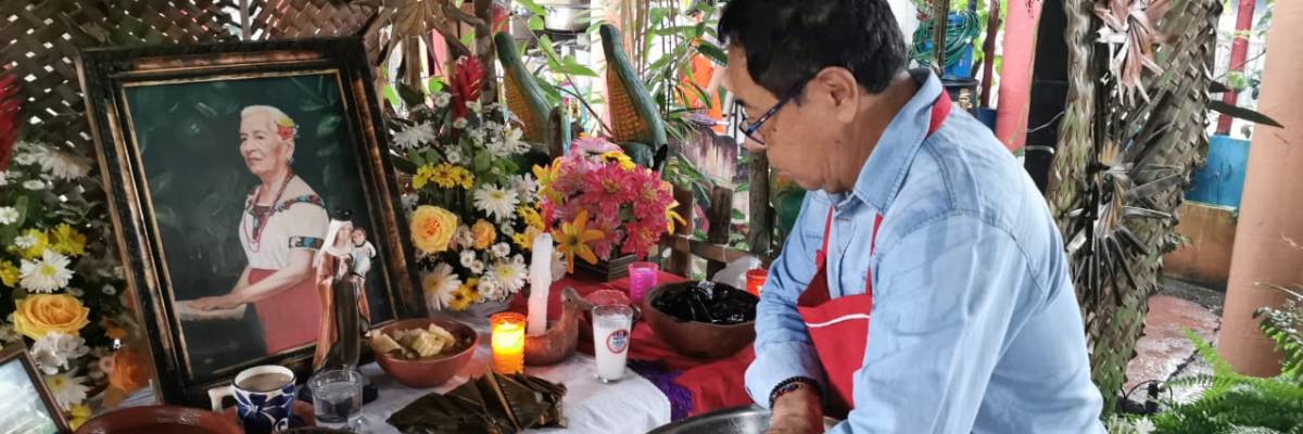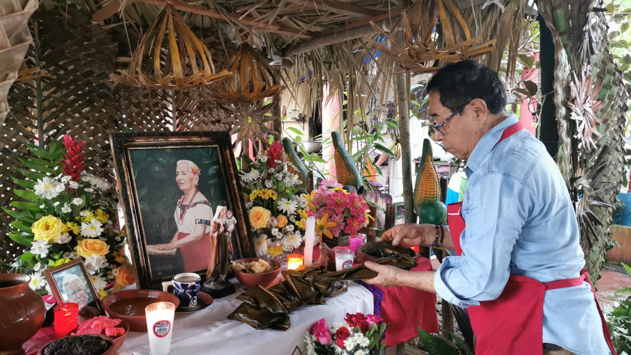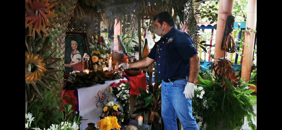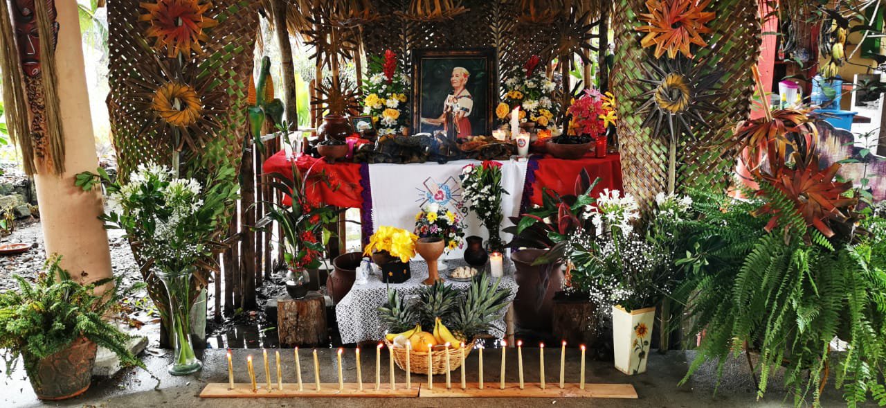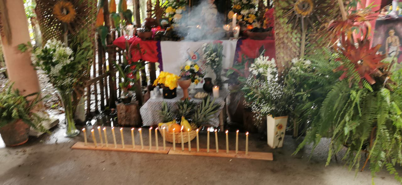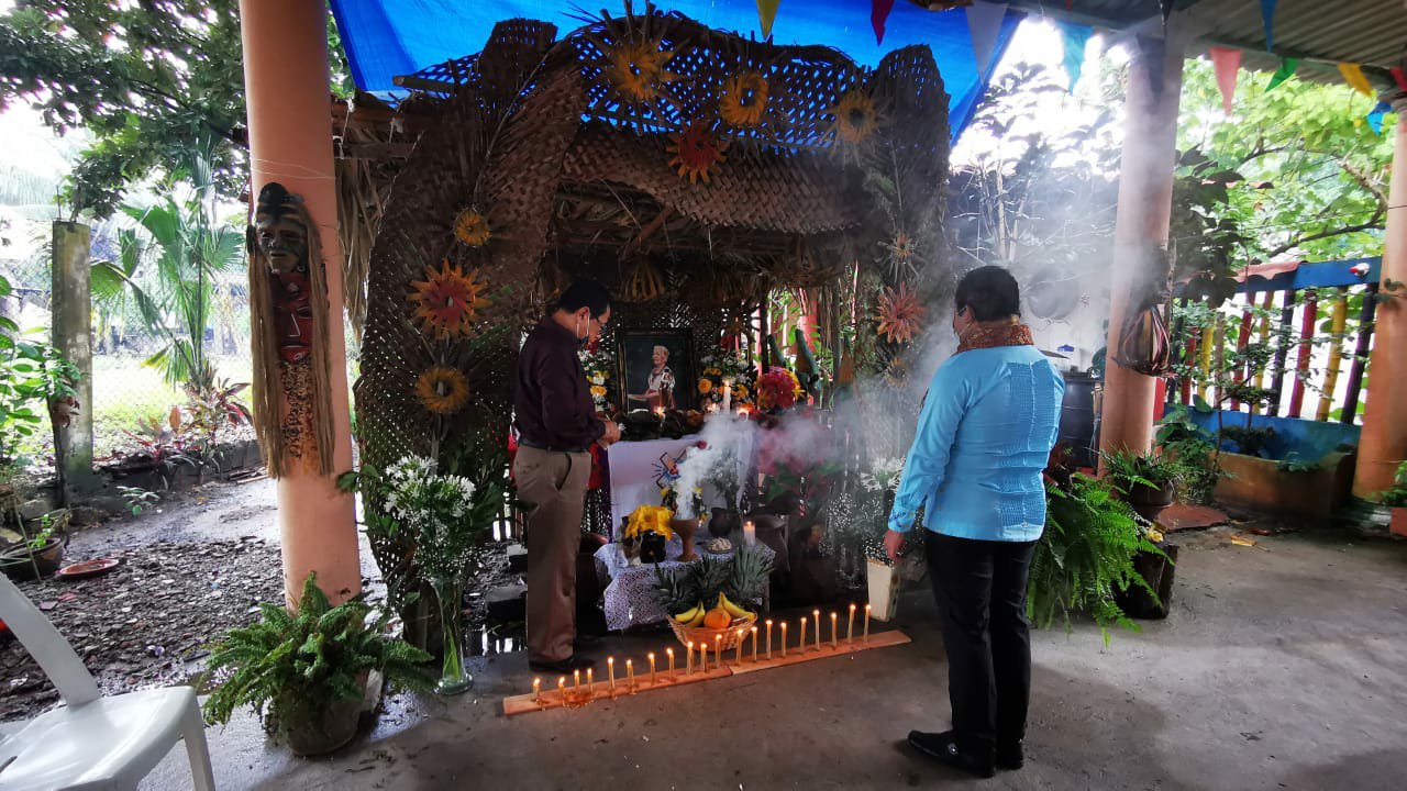 Jacqueline de la Cruz Osorio asociada y el Prof. Germán Lobatón Peredo cronista, todos integrantes de la delegación Tabasco y representantes oficiales del Instituto de Investigación y Difusión de la Mexicana AC. marca registrada, la importancia y finalidad de estar presentes es poder constatar que en ese lugar se continúan preservando, cuidando y difundiendo las costumbres y tradiciones de la comunidad Yokot’an, en la cuál inician desde una semana antes con los preparativos de todo los materiales que se utilizarán para la elaboración del altar, cabe hacer mención que dentro de los muchos elementos que se utilizan, se colocan la imagen religiosa, las fotografías a quien se le dedica, veladoras, agua, flores y alimentos y bebidas que eran del gusto de los finados, todo ello va en utensilios de barro llamados cajetes y jicaras ahumadas, el sahumerio que con su agradable aroma a copal e incienso, purifica el espacio y principalmente el altar. De igual manera se le dedica un espacio especial a la llamada anima sola, llamada ado ya que se dice, es alguien que no tiene quien eleve una oración por su alma, El rezandero guía todo el rosario y las personas asistentes van participando de ello, al término del rezo se concluye con un convivo preparado especialmente para todos los asistentes a dicha actividad, muchas gracias mtro. Roldan por permitirnos ser parte de esta importante actividad de la comunidad yokot’an.