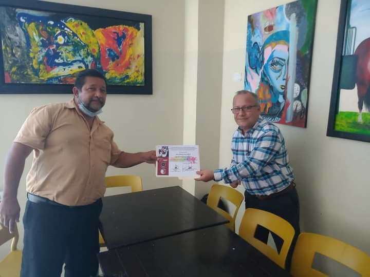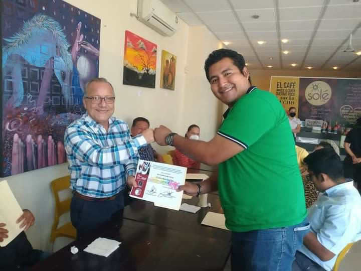Cárdenas, Tabasco. Este martes en representacion del alcalde Armando Beltrán Tenorio el director de la DECUR municipal Víctor Agüero Mollinedo se reunió en un lugar conocido para realizar una convivencia y hacer entrega de un sencillo pero significativo reconocimiento a los artistas plásticos cardenenses que se sumaron a participar en la exposición «Colores en tu Memoria» que en homenaje postumo al maestro Jose Valeriano Maldonado y Arellano celebramos en el mes de Enero de este año.
