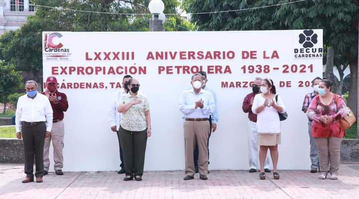 Éste destacado evento con todos los protocolos de salud, donde el Maestro Carlos Mario Estrada López, Contralor Municipal a nombre del Gobierno de Cárdenas llamó a ver esta conmemoración «Como una verdadera oportunidad para reflexión en torno al destino energético de México, la autosuficiencia y Soberanía Nacional, pero también para pronunciarnos, para que los beneficios de este recurso se traduzcan en apoyo a la economía y en general al ámbito social».