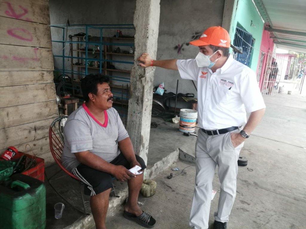 Cárdenas, Tabasco. Luego de que llevará acabo la inauguración de sus oficinas y casa de campaña en Cardenas, el candidato de Movimiento Ciudadano (MC), por la diputación federal por el Distrito 2, correspondiente a Cárdenas y Huimanguillo, Miguel Angel de la Fuente Herrera, recorrió casa por casa la colonia Cañales, donde dio a conocer las vertientes de mejora al llegar al Congreso de la Unión.