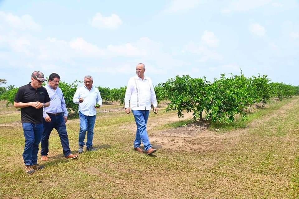 Acompañado del alcalde Óscar Ferrer Ábalos y el titular de la Secretaría de Desarrollo Agropecuario, Forestal y Pesca (Sedafop), Jorge Suárez Vela, Carlos Merino supervisó este miércoles las plantaciones de ranchos citrícolas, además de las empacadoras ‘Las Heveas’, ‘Piraña’ –también exportadora– y Tabafresch.