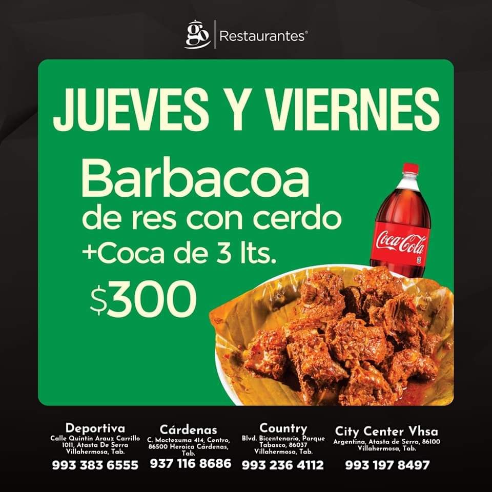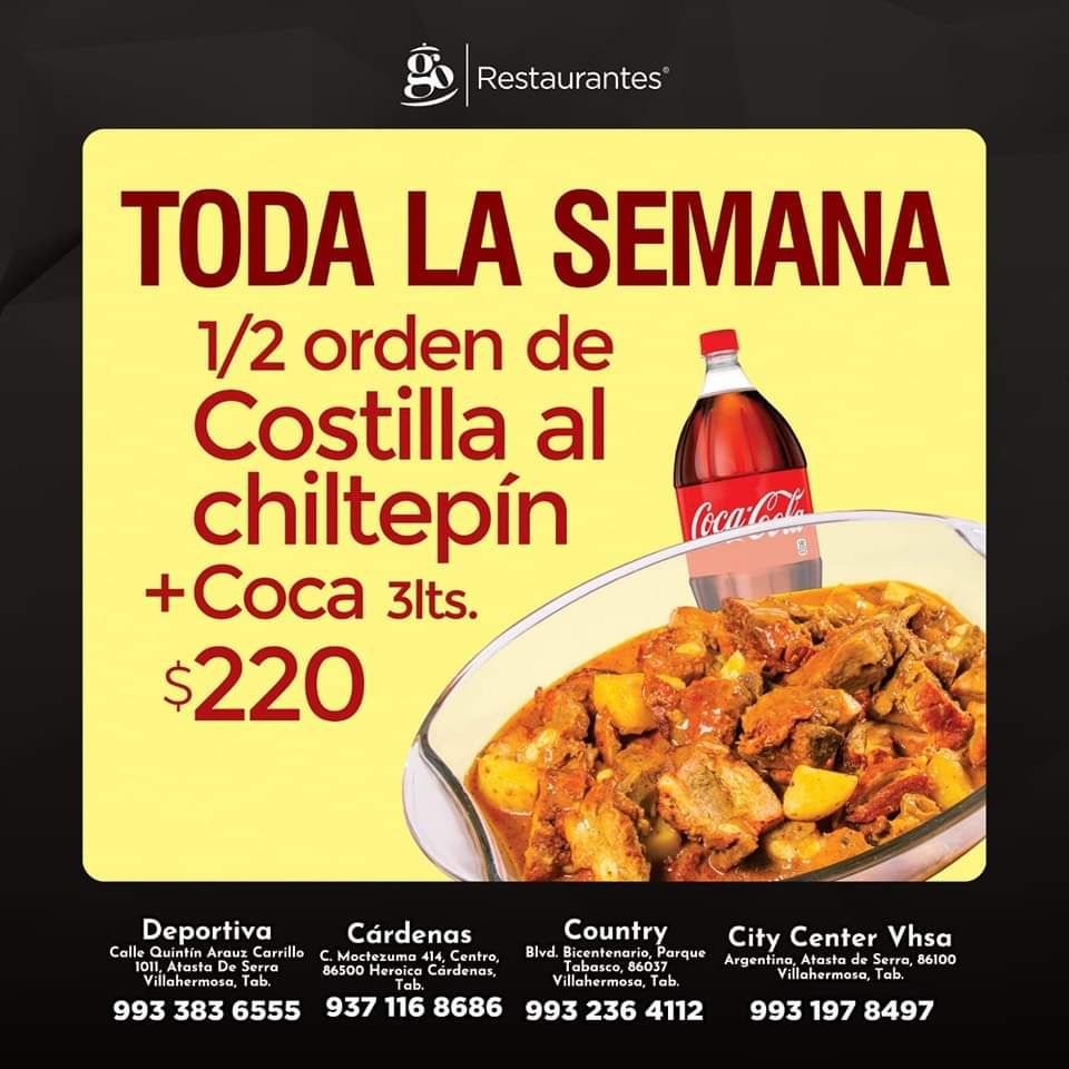 Cárdenas, Tabasco. DISFRUTA DE LOS GOENISIMOS PLATILLOS QUE SOLO Restaurantes GO HC TE PUEDE OFRECER.