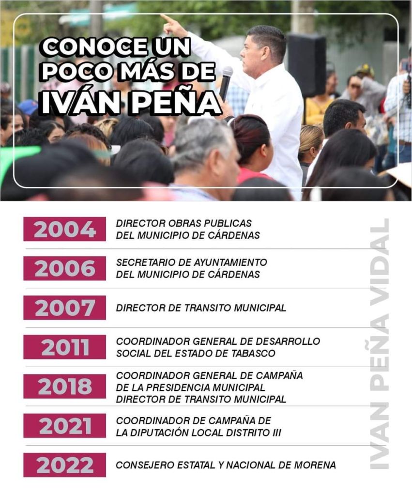 Cárdenas, Tabasco. Arranca campaña como candidato a la diputación federal por el II distrito, el Ing. Ivan Peña Vidal este próximo lunes 4 de marzo, en punto de las 8.30 de la mañana en el Parque central de Cárdenas.